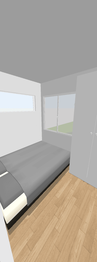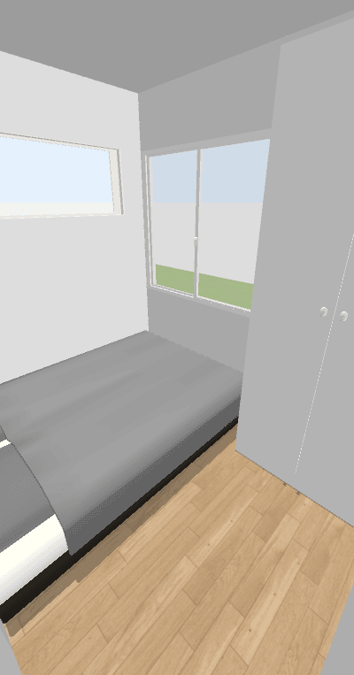 In the 20 feet container, the bedroom comes with a king sized bed that can fit a max of 2 persons. There are 2 windows located inside the room, to ensure more natural light. Also, the room comes with a closet.